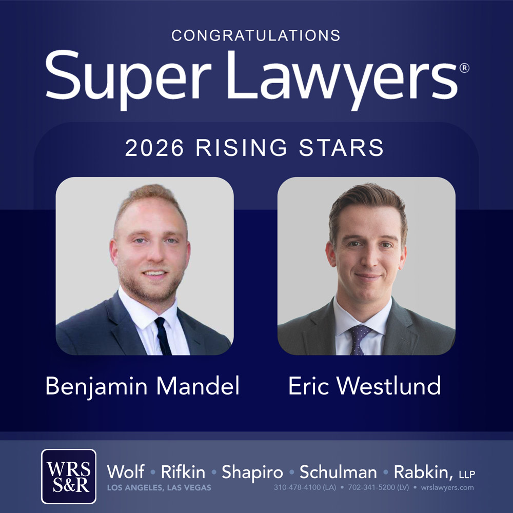 Wolf, Rifkin, Shapiro, Schulman & Rabkin, LLP congratulates attorneys Benjamin Mandel and Eric Westlund, who were recognized as 2026 Southern California Super Lawyers Rising Stars. Rising Stars are the top 2.5% percent of attorneys in each state, under 40 years old and/or who have been practicing for 10 years or less, as chosen by their peers and through independent research. The Rising Stars process is designed to identify lawyers who have attained a high degree of peer recognition and professional achievement. Rising Stars is a comprehensive and diverse listing of outstanding attorneys, representing a wide range of practice areas, firm sizes, and geographic locations.